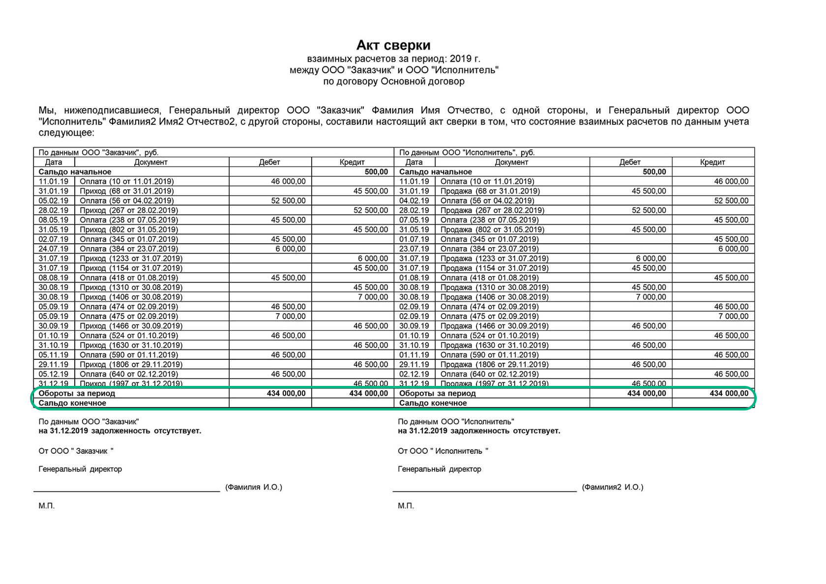Подписанный акт подтверждает согласованную сумму расчетов и снижает риск споров с контрагентом. Также документ нужен и при наличии задолженности. Если контрагент подтверждает долг, срок исковой давности начинает течь заново (ст. 203 ГК РФ). Это дает компании дополнительное время для взыскания задолженности в судебном порядке. Общий срок для обращения в суд составляет три года (ст. 196 ГК РФ).