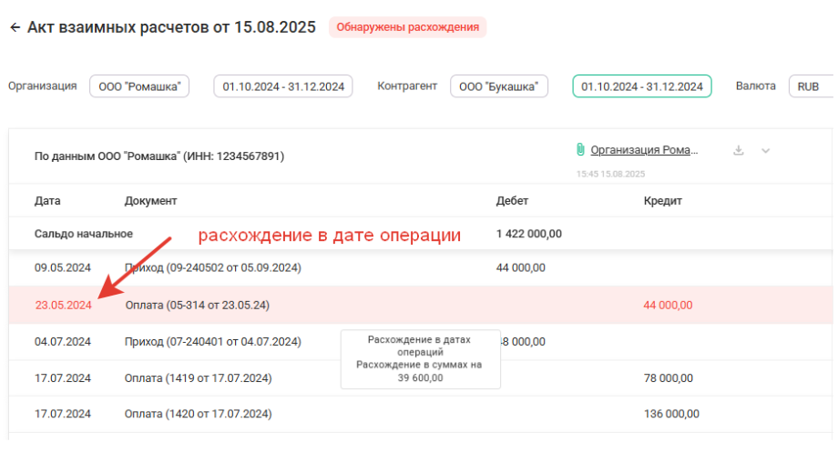 2) В датах. Если операция отражена в разные дни, сервис укажет на это отдельно: