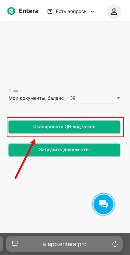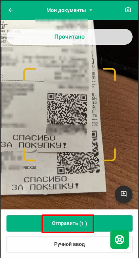 После входа или регистрации на сайте Entera вам необходимо нажать зеленую кнопку «Сканировать QR-код чеков». Наведите камеру смартфона на QR-код на чеке и дождитесь появления надписи «Прочитан». Теперь кликните «Отправить» и дождитесь получения данных из ОФД в течение 5-15 минут.