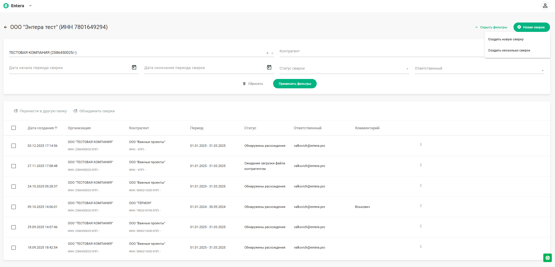 Автоматизация через Entera Акты сверки экономит время, снижает риск ошибок и делает сверку прозрачной и контролируемой.