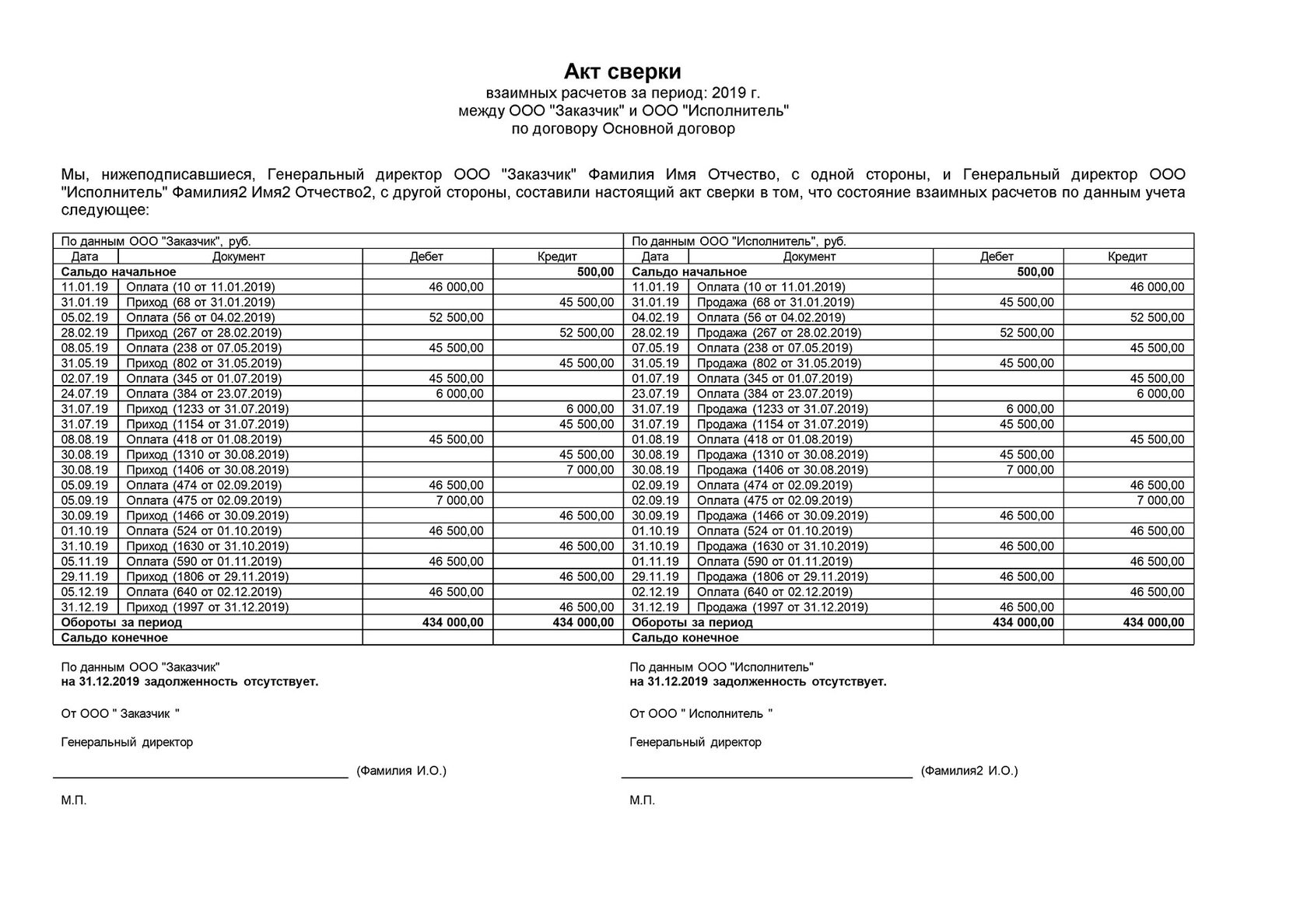 - название документа («Акт сверки взаиморасчетов»);