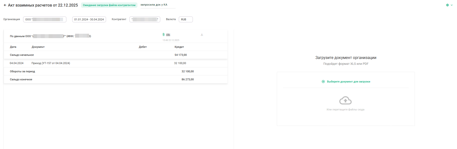 2. Загрузите акты для сверки