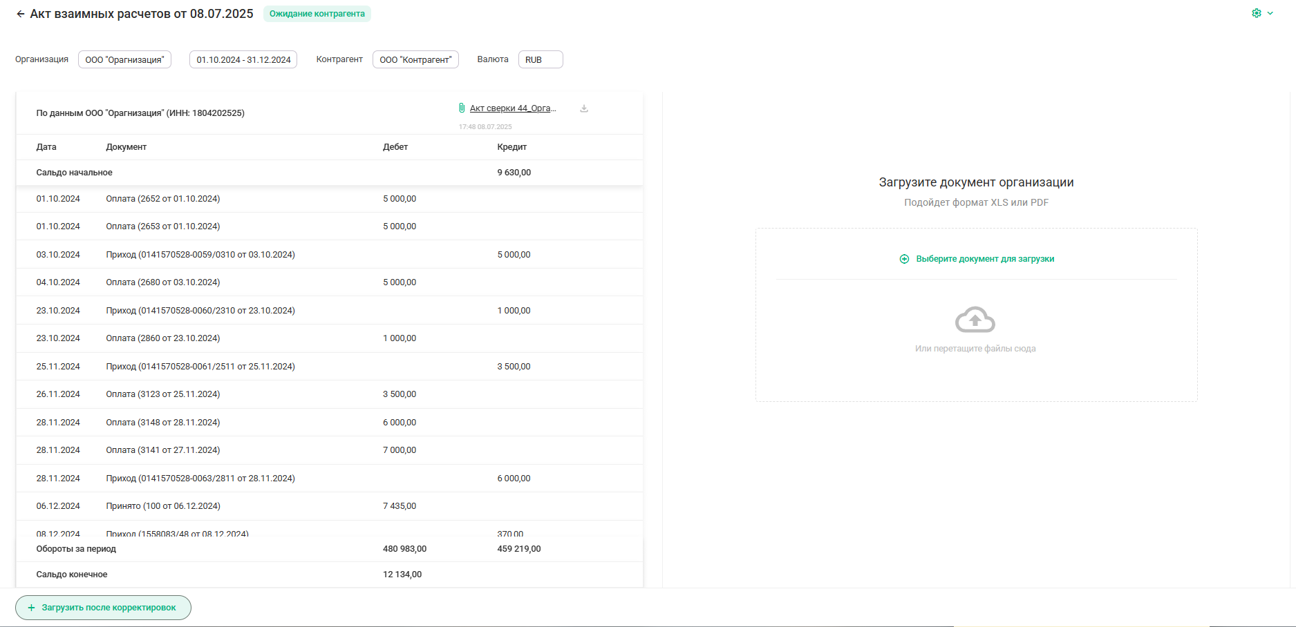 2. Загрузите акты для сверки